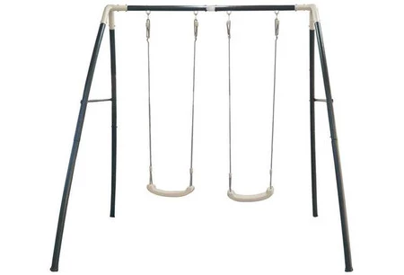 W zestawie znajdują się 4 kotwy, które zapewniają trwałe mocowanie huśtawki do podłoża. Siedziska zostały wykonane z wysokiej jakości tworzywa odpornego na warunki atmosferyczne oraz promieniowanie UV. Wysokość każdego siedziska można regulować.