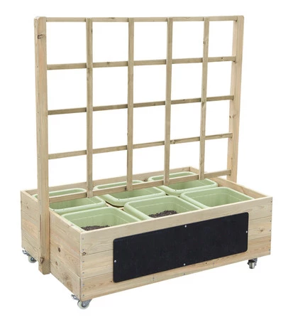Drewniany Kwietnik od marki CLASSIC WORLD z serii EDU może być wspaniałym wejściem do każdego otoczenia, placu zabaw czy ogrodu! Zawiera sześć solidnych doniczek do sadzenia najróżniejszych kwiatów, łuk listwowy do zaczepienia roślin. Idealny do winorośli, ale nie tylko - spróbuj zasadzić co tylko chcesz! Z przodu kwietnika znajduje się tablica kredowa, na której można zapisywać notatki. Podczas wypełniania donic i np. sadzenia warzyw, dzieci będą się dobrze bawić przy pielęgnacji roślin oraz uczyć się odpowiedzialności i konsekwencji. Poznają także rośliny i biologię od najmłodszych lat! Idealny zestaw do odgrywania ról - zabawa w ogrodnika poprawi również umiejętności współpracy i rozwinie umiejętności komunikacji społecznych!