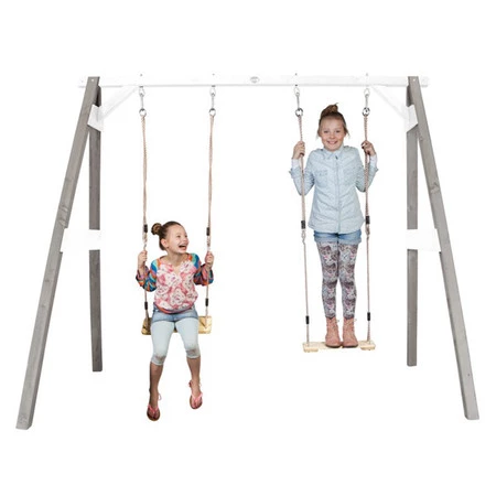 Axi Huśtawka drewniana szara zestaw plac zabaw Drewniany zestaw huśtawek Axi składa się z dwóch tradycyjnych huśtawek. Dzięki szerokiej rozpiętości wieku dzieci korzystających z huśtawki, może ona dostarczyć niezapomnianych chwil ruchu na świeżym powietrzu, śmiechu i zabawy na długie lata, tak jak każdy inny produkt firmy Axi.