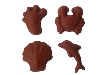 - Silikonowe foremki do piasku 4 szt. marki Scrunch w kolorze ciemnobrązowym. Idealne do zabrania w podroż.