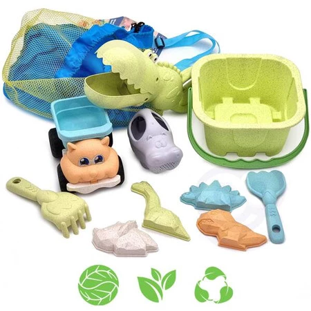 WOOPIE GREEN Zestaw do Piasku z Wiaderkiem i Łopatką Krokodyl 10 el. BIODEGRADOWALNY ORGANICZNY MATERIAŁ