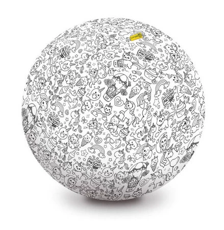 - Piłka wykonana z materiału, wypełniona wymienialnym balonem XXL. Średnica: 85 cm. W zestawie 12 kredek spieralnych oraz klips zamykający balon. Cena za sztukę.