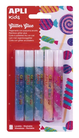Brokatowy klej ozdobny Apli Kids - 5 tęczowych kolorów