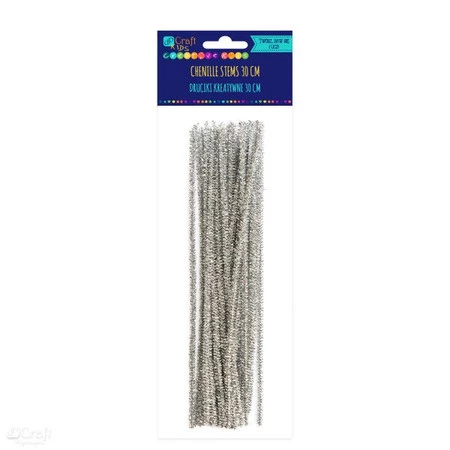 - Srebrne druciki kreatywne 0,4cm grube i 30cm długie. Komplet zawiera 25 sztuk drucików.