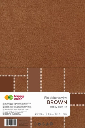 • Brązowy filc w formacie A4 (21 cm x 29,7 cm) do wszelkiego rodzaju dziecięcej aktywności twórczej, a także do stworzenia zabawek i pomocy.