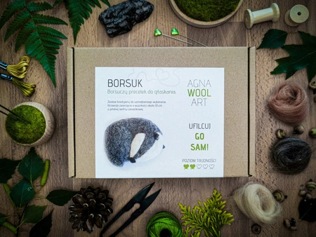 • wełna czesankowa w kolorze borsuka, białym i czarnym