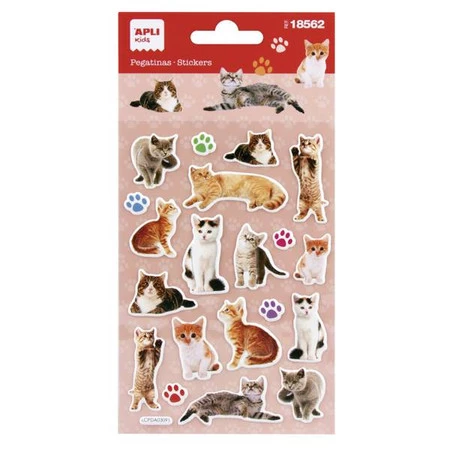 Zestaw naklejek Apli Kids z uroczymi kotkami. Doskonale sprawdzą się do ozdobienia zeszytów, książek, laurek, albumów, zaproszeń na urodziny, itp. Arkusz składa się z 20 naklejek jednorazowego użytku wykonanych z PVC. Zabawa naklejkami to świetny sposób na rozwijanie małej motoryki, pobudzenie kreatywności, pomysłowości i zdolności narracyjnych.
