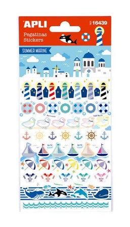 Zestaw naklejek Apli Kids z morskim motywem. Doskonale sprawdzą się do ozdobienia zeszytów, książek, laurek, albumów, zaproszeń na urodziny, itp. Arkusz składa się z 58 naklejek jednorazowego użytku. Zabawa naklejkami to świetny sposób na rozwijanie małej motoryki, pobudzenie kreatywności, pomysłowości i zdolności narracyjnych.