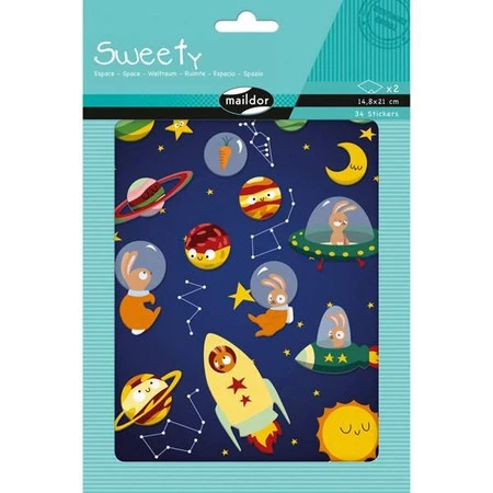 Rozmiar arkuszy: 14,8x21 cm. W opakowaniu 2 identyczne arkusze naklejek i 1 kartonik do dekorowania.
