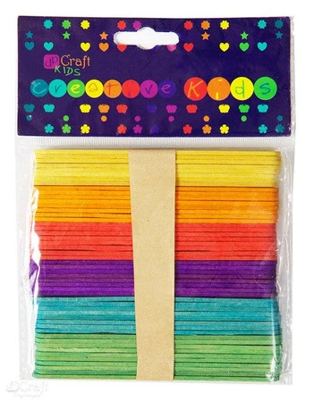 - Kolorowe patyczki kreatywne to prosta, a jednocześnie dająca szereg możliwości zabawka. Opakowanie zawiera 50 drewnianych patyczków do lodów w różnych kolorach.
