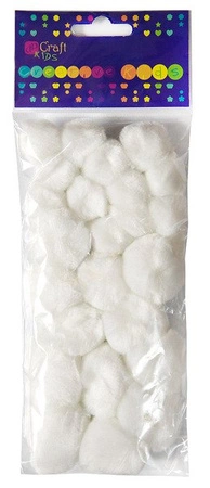 - Komplet 24 sztuk różnej wielkości pomponów akrylowych w kolorze białym.