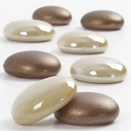 Brązowa mozaika szklana w kształcie okrągłych/owalnych kamyków. Zestaw elementów w 2 odcieniach: 1. nieprzejrzysty z matowym wykończeniem, 2. nieprzejrzysty z błyszczącym. Idealna do dekoracji stołu na różne okoliczności np. chrzciny, wesele, urodziny, elegancką kolację ze znajomymi. Można ją wykorzystać jako samodzielną ozdobę i jako element dowolnego projektu, również zmieniając jej charakter (np. malując po niej markerami do szkła lub porcelany). Jest płaska od spodu, co pozwala na przyklejenie jej do wielu powierzchni. Jest zapakowana w prostopadłościenny plastikowy słoik, co ułatwia przechowywanie. Nieodpowiednie dla dzieci w wieku poniżej 36 miesięcy. Wymiary D: 18-20 mm, grubość około 8 mm, w opakowaniu 370 g (około 70 szt.).Podmiot odpowiedzialny za ten produkt na terenie UE
