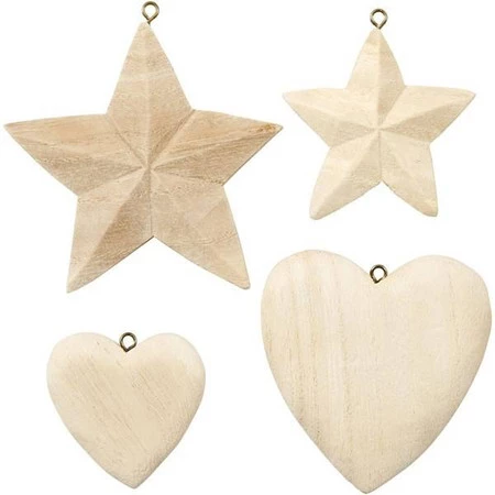 Serca i Gwiazdy z drewna 4 szt.