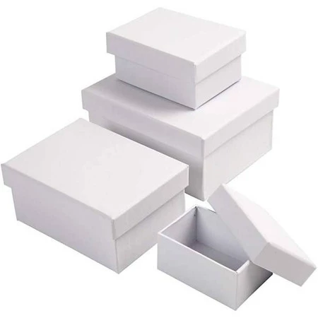 Pudełka z papier-mache z pokrywkami. Zewnętrzna warstwa z białego papieru.