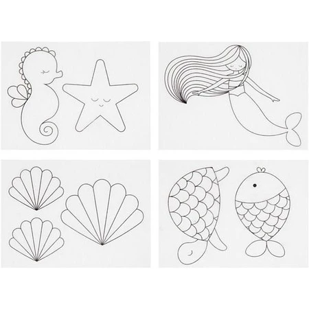 - 4 arkusze folii termokurczliwej w formacie A6 z morskimi wzorami.