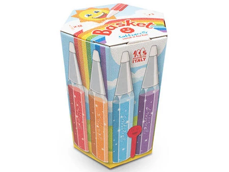 Bardzo pomysłowy, kreatywny i wyjątkowy zestaw 12 pisaków z magicznym piaskiem do kolorowania pochodzącym ze zmielonego marmuru. Piaskowe kolorowanki Sabbiarelli to zabawka edukacyjna przeznaczona dla dzieci, w której bezpośredni kontakt z piaskiem stanowi aspekt edukacyjny w odniesieniu do materiałów. Praca z piaskiem podczas kolorowania rysunków jest nie tylko szczególnie przyjemna dla dzieci, ale również pozwala im rozwijać wyobraźnie i tworzyć piękne obrazki bez użycia nożyczek, kleju lub farb. Te wyjątkowe pisaki do kolorowania piaskiem zostały wykonane tylko i wyłącznie z bezpiecznych i nietoksycznych materiałów. Zestaw pisaków do kolorowania w połączeniu z album do kolorowania magicznym piaskiem to idealny pomysł na zabawę z przyjaciółmi, a także fajny pomysł na prezent.