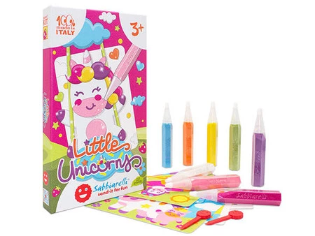 - Kreatywny zestaw do kolorowania piaskiem dla dzieci z ulubionymi jednorożcami. Magiczny piasek do kolorowania Sabbiarelli to świetna zabawa z piaskiem, który dzieci uwielbiają. Rozwija zdolności manualne, wyobraźnię, pozwala tworzyć piękne obrazki.