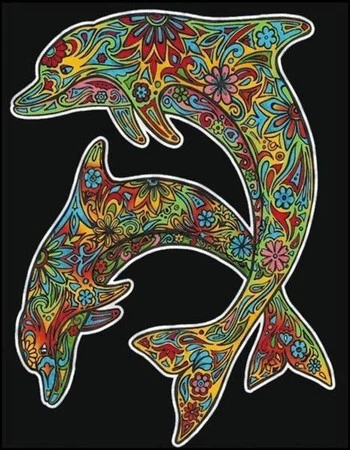 Wypukłe linie ułatwiają nie wychodzenie za linie, a na głębokiej matowej czerni nie widać drobnych potknięć przy kolorowaniu. Welwet nałożony jest na papier przyklejony do sztywnej tektury, dzięki czemu obraz nie wymaga ramki jeśli zdecydujemy się go powiesić na ścianie.