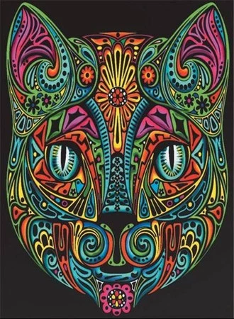Wypukłe linie ułatwiają nie wychodzenie za linie, a na głębokiej matowej czerni nie widać drobnych potknięć przy kolorowaniu. Welwet nałożony jest na papier przyklejony do sztywnej tektury, dzięki czemu obraz nie wymaga ramki jeśli zdecydujemy się go powiesić na ścianie.