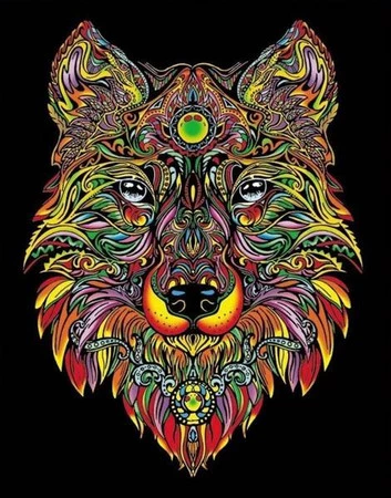 Wypukłe linie ułatwiają nie wychodzenie za linie, a na głębokiej matowej czerni nie widać drobnych potknięć przy kolorowaniu. Welwet nałożony jest na papier przyklejony do sztywnej tektury, dzięki czemu obraz nie wymaga ramki jeśli zdecydujemy się go powiesić na ścianie.