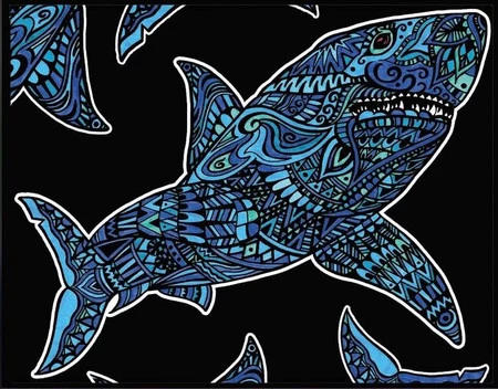 Wypukłe linie ułatwiają nie wychodzenie za linie, a na głębokiej matowej czerni nie widać drobnych potknięć przy kolorowaniu. Welwet nałożony jest na papier przyklejony do sztywnej tektury, dzięki czemu obraz nie wymaga ramki jeśli zdecydujemy się go powiesić na ścianie.