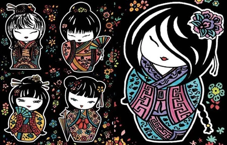 Notatnik Welwetowy A5 Laleczki Kokeshi