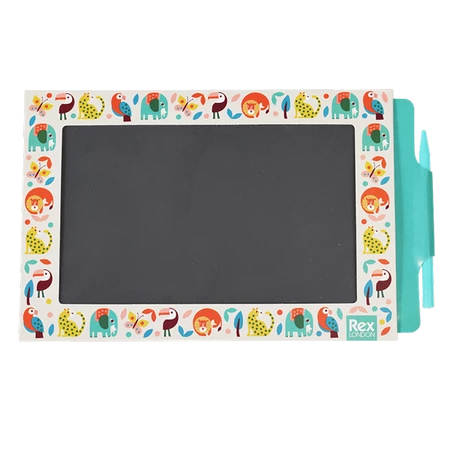 Czy tablica do rysowania może być magiczna? Ależ tak! Wystarczy tylko wręczyć znikopis Rex London dzieciakom i pozwolić im działać. Unikalne właściwości tablicy pozwalają po niej rysować i bazgrać do woli, a następnie wymazywać i zaczynać od początku. Wystarczy użyć suwaka z boku, a magia zadzieje się sama. Zabawka jest cienka i lekka, z łatwością zmieści się w dowolnej torbie, a w podróży skutecznie rozprawi się z nudą. Kolorowe ornamenty wokół okienka uprzyjemnią małemu artyście chwile z kreatywnym zajęciem.