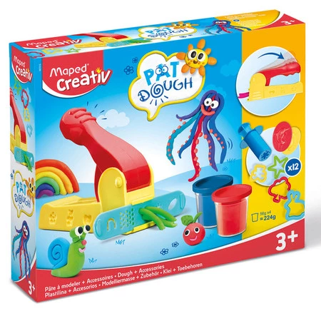 Z miękką, nieklejącą masą plastyczną Maped Creativ naprawdę można kreatywnie zaszaleć. Ulepisz praktycznie wszystko co przyjdzie Ci do głowy. Kolorowe akcesoria uatrakcyjnią zabawę: prasa do wyciskania 10 różnych wzorów, 4 formy do wyciskania kształtów, nożyk, 2 owalne pieczątki. Zabawa z masą rozwija zdolności manualne dzieci. Ćwiczenie mięśni małych rączek jest ważnym etapem przygotowującym najmłodszych do nauki pisania. Transparentne pojemniki 56 g umożliwiają podgląd zawartości bez otwierania.