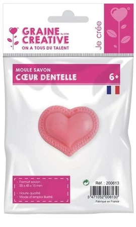 Foremka z przezroczystego, twardego plastiku w kształcie serca z oblamówką.