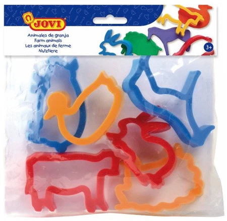- 6 sztuk foremek w kształcie zwierząt gospodarskich: krowy, kaczki, konia, świni, zająca, owcy. Foremki w połączeniu z ciastoliną JOVI pomogą w nauce rozpoznawania zwierząt, a jednocześnie będą stanowiły świetną zabawę.