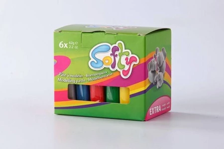 Miękka masa do modelowania. Dzięki świetnej plastyczności można z niej tworzyć detale naszych figurek. Kolory można ze sobą mieszać. Nie brudzi rąk i nigdy nie wysycha. Składa się głównie z wosku i skrobi kukurydzianej, bez GMO i bez glutenu. Ugniatanie masy Softy może wspomóc rehabilitację palców. Kolory w zestawie: złamany biały, żółty, pomarańczowy, czerwony, niebieski, zielony.
