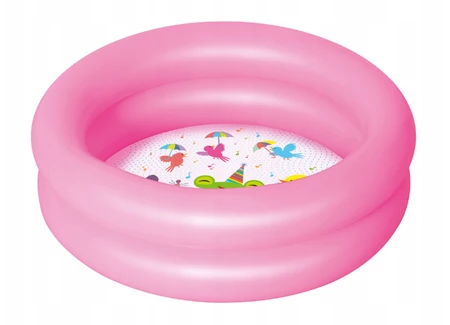Basenik jest w kolorze różowym z atrakcyjnym dla dzieci bajkowym wzorem.