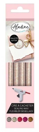 - Pałeczki laku w kolorze perłowym z brokatem umożliwią stworzenie unikalnych pieczęci np. na zaproszeniach komunijnych lub ślubnych.