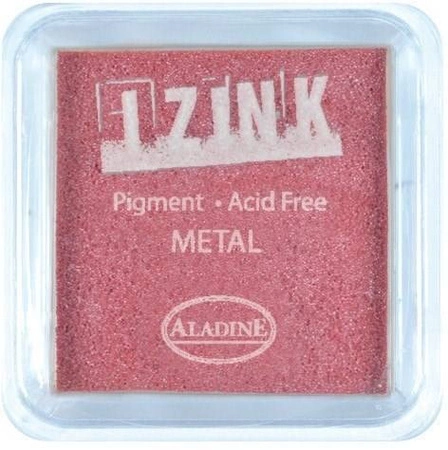 - Tusz na papier do stempli czerwony metalik. Zamykane pudełeczko o wymiarach 5,2 cm x 5,2 cm x 2,2 cm.