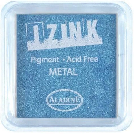 - Tusz na papier do stempli niebieski metalik. Zamykane pudełeczko o wymiarach 5,2 cm x 5,2 cm x 2,2 cm.