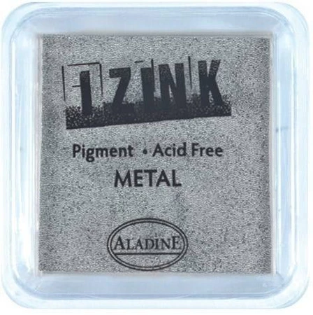 - Tusz na papier do stempli srebrny. Zamykane pudełeczko o wymiarach 5,2 cm x 5,2 cm x 2,2 cm.