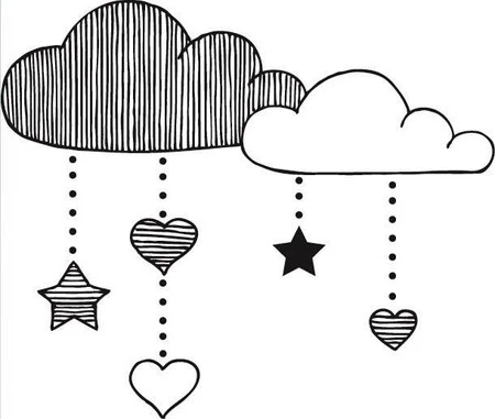 - Stempel Chmurki z Sercami i Gwiazdkami - gumowy z drewnianą rękojeścią. Wysokość 2,7 cm, długość 6 cm i szerokość 6 cm.