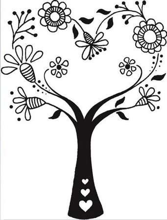 - Stempel Drzewo-Serce z Kwiatów - gumowy z drewnianą rękojeścią. Wysokość 2,7 cm, długość 5,2 cm i szerokość 7,2 cm.
