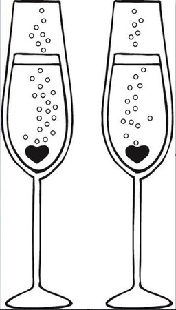 - Stempel Szampan dla Dwojga - gumowy z drewnianą rękojeścią. Wysokość 2,7 cm, szerokość 4 cm, długość 6 cm.