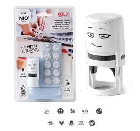 - Samotuszująca pieczątka Little NIO z 10 wymiennymi wzorami w tematyce: ręcznie zdobione.