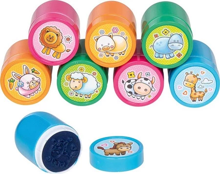 Kolorowe stempelki z obrazkami zwierzątek będą wspaniałym uzupełnieniem każdej pracy plastycznej maluszka. To idealny pomysł na ozdobienie ramek, zakładek, laurek lub innych ozdób, jakie stworzy mały artysta! Odbijamy stempelek w dowolnym miejscu - co ważne - delikatnie, nie naciskając zbyt mocno! Gdy pieczątka jest odbita, wystarczy tylko pokolorować zwierzątko... i gotowe! Zabawa stempelkami dostarcza maluszkom wiele radości, jest ciekawa i zajmująca. Rozwija kreatywność, uczy koordynacji, poznawania kolorów i otaczającego świata. Pieczątki na pokrywce posiadają grafikę danego zwierzątka, które się mieni, raz widzimy całe zwierzątko a za chwilkę pojawia się buźka danego zwierzaka. Stempelki wykonane są z wysokiej jakości materiałów z użyciem bezpiecznych dla dziecka jak i środowiska barwników. Do zmycia tuszu ze skóry dziecka, ubrania lub mebli wystarczy zwykła woda, bez żadnych detergentów.
