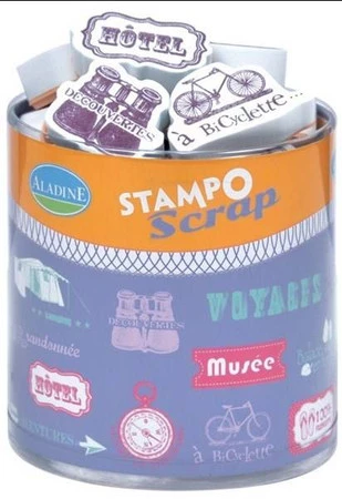 - Stempelki do Scrapa Podróże. Zestaw 28 gumowych stempelków.