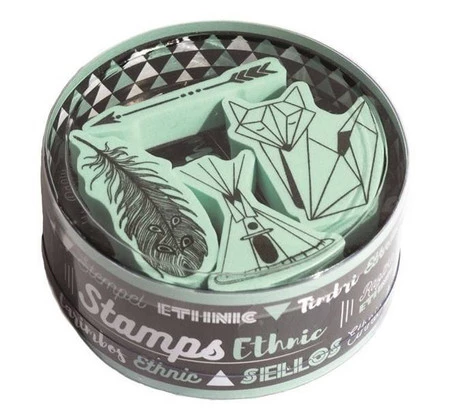 - Stempelki Prezencik Etniczne. Zestaw 4 gumowych stempelków z piankowymi rączkami.