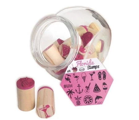 Zestaw 14 gumowych stempelków z drewnianymi rączkami w efektownym szklanym słoju. W zestawie dodatkowo jedna gąbeczka z czarnym tuszem do papieru. Zestaw pozwala na ozdobienie kartek okolicznościowych, albumów, wszelkich ozdób z kartonu, pamiętników itp. Słój ułatwia przechowywanie, może stać pionowo lub ukośnie. Wzorki można również odbijać na przeróżnych innych powierzchniach, trzeba tylko dokupić tusz lub farbę odpowiednią do nich. Gąbeczka ma osobny plastikowy pojemniczek z pokrywką, aby zapobiec wysychaniu tuszu kiedy nie jest on używany. Gąbeczka wystaje ponad krawędź pojemniczka aby można było pokryć tuszem stempelki o większych wymiarach niż gąbeczka. Nieodpowiednie dla dzieci w wieku poniżej 36 miesięcy. Wymiary rączki stempelków D: 2 cm L: 3 cm, wymiary wzorów 15-18 mm. Wymiary gąbeczki z tuszem 2,4x2,4 cm. Wymiary słoja L: 10,5 cm, W: 7,7 cm, H: 10,2 cm. Made in China.Potrzebujesz pomocy? Masz pytania?Zadaj pytanie a my odpowiemy niezwłocznie, najciekawsze pytania i odpowiedzi publikując dla innych.