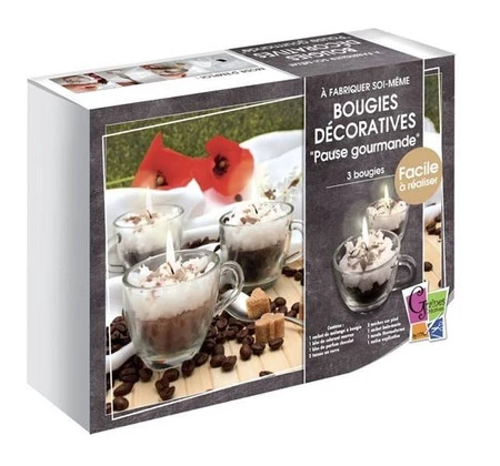 Zestaw zawiera : - worek z woskiem - blok brązowego barwnika - blok czekoladowego aromatu - 3 knoty z podstawką - 1 torebka do kąpieli wodnej - foremka - instrukcja Rozetnij worek z woskiem i włoż go do rondla z zimną wodą, a następnie podgrzej na małym ogniu do czasu aż wosk się rozpuści. Woda nie może się gotować. Gdy wosk się rozpuści, natychmiast wlej 80 g płynu do półkulistej formy. Zachowaj pozostałą część. Gdy wosk trochę ostygnie kilka razy ubijaj go widelcem do momentu aż będzie całkiem biały i pierzasty. Włóż knoty do ciepłych filiżanek, dodaj barwnik i zapach do pozostałej części wosku, wymieszaj i zapełnij filiżanki do 3/4 wysokości. Dla uzyskania różnej gradacji koloru do każdej z filiżanek dodaj mieszankę z inną ilością barwnika. Wstaw filiżanki do lodówki. Gdy górna warstwa świecy stwardnieje umieść biały wosk wokół knota. Wytnij wiórki z brązowego barwnika i posyp nimi każdą ze świec. Produkt przeznaczony do użytku przez osoby dorosłe.Potrzebujesz pomocy? Masz pytania?Zadaj pytanie a my odpowiemy niezwłocznie, najciekawsze pytania i odpowiedzi publikując dla innych.