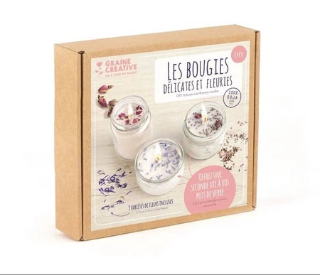 - Zestaw do samodzielnego wykonania świec sojowych z suszonymi kwiatami.