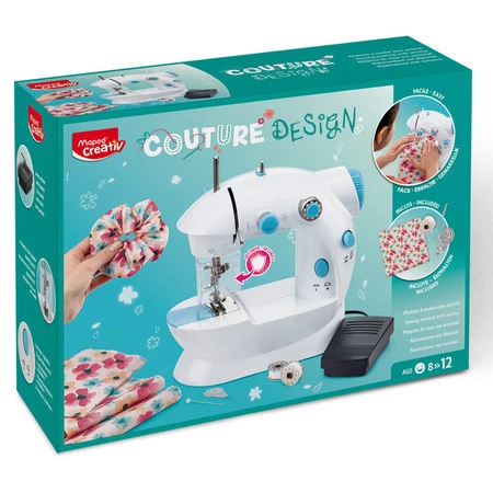 Maszyna do szycia dla dzieci idealna dla początkujących. Jest odpowiednikiem prawdziwej maszyny do szycia dla dorosłych: jest wyposażona w pedał uruchamiający maszynę, który angażując stopę daje swobodę rąk, ma naprężacz nici górnej i 2 ustawienia prędkości szycia.