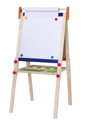 Dwuplanszowa tablica do rysowania firmy Viga Toys. Na jednej planszy można pisać kredą, a na drugiej mazakiem. Tablice są duże i wygodne, oraz umieszczone na stabilnym stelażu. Jest to idealny prezent dla każdego dziecka, którego pasją jest rysowanie. Kreatywna zabawa rozbudza wyobraźnię, oraz poprawia zmysł artystyczny.