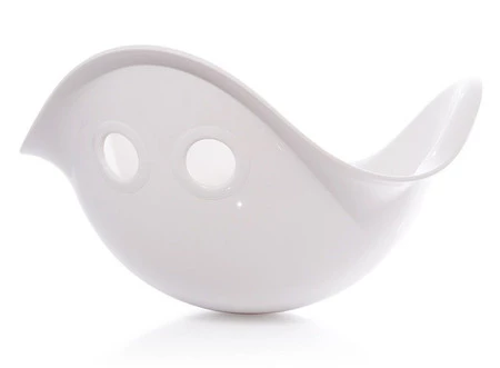 - Muszelka Bilibo w kolorze białym. Zabawka o szerokim zastosowaniu dla dzieci od 2 do 7 lat.