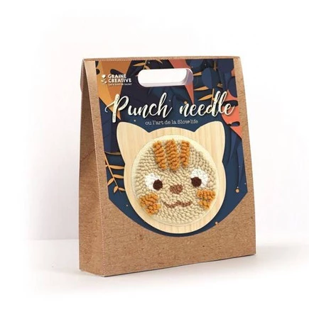 Zestaw punch needle do haftowania igłą tkacką. Zawartość zestawu: - ozdobny tamborek drewniany D: 15 cm, - kanwa 25 x 25 cm, - włóczka w 5 kolorach, - igła tkacka D: 5 mm z drewnianą rączką, - igła do nawlekania z rozdwojonego drucika, - szablon ze wzorem, - obrazkowa instrukcja. Instrukcja: 1. Zakładamy kanwę na tamborek - odkręcamy śrubkę i materiał wkładamy pomiędzy drewniane obręcze. Po dokręceniu śrubki kanwę z wyczuciem naciągamy. 2. Szablon docinamy do kształtu tamborka i podkładamy go od lewej strony, po czym kładziemy pod światło i odrysowujemy wzór. 3. Na igłę nawlekamy włóczkę za pomocą rozdwojonego drucika. Najpierw przeciągamy nić przez całą obsadkę, a potem przez ucho igielne. 4. Zaczynamy haftowanie od konturów, a potem wypełniamy resztę. Igłę wbijamy do końca i wyciągamy ją tak, aby cały czas była blisko powierzchni. Wkłucia powinny być dość gęste i równe, a kłębek włóczki luźny. Końcówki nici przeciągamy na lewą stronę za pomocą igły z drucika.Potrzebujesz pomocy? Masz pytania?Zadaj pytanie a my odpowiemy niezwłocznie, najciekawsze pytania i odpowiedzi publikując dla innych.